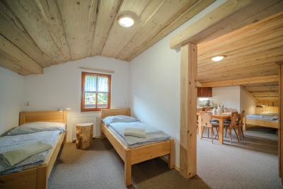 Postel: 1 manželská postel, 2x jednolůžková postel, možnost jedné přistýlky
