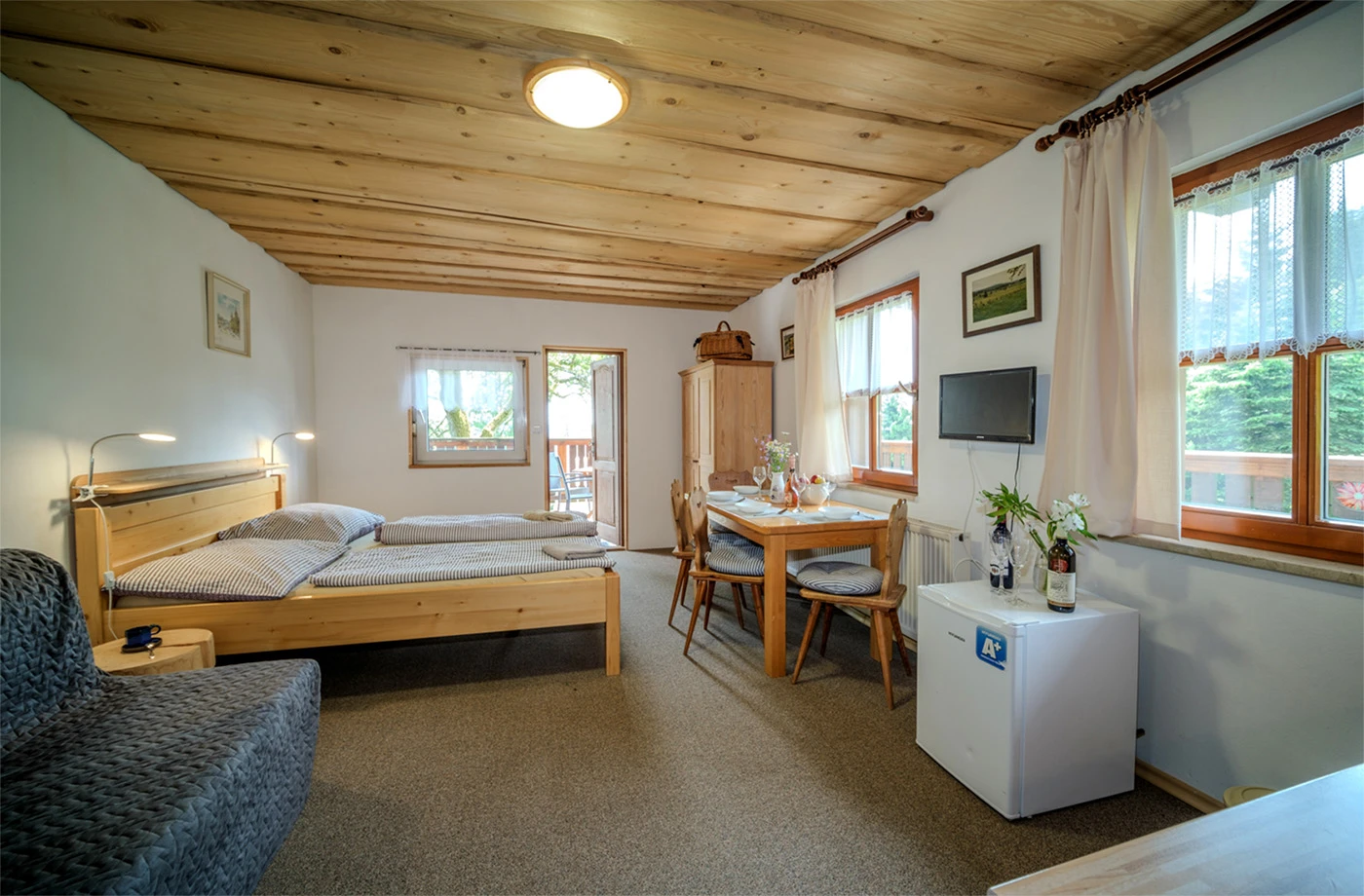 Pokoj je velký 20 m2, má koupelnu se sprchovým koutem a toaletou. Dalším vybavením pokoje je manželská postel (rozměr 180×200 cm), lednička, skříň a komoda. Pokoj má sezení se stolkem a dvěma křesílky, balkon a až na jeden, mají všechny pokoje Komfort s balkonem i předsíňku.