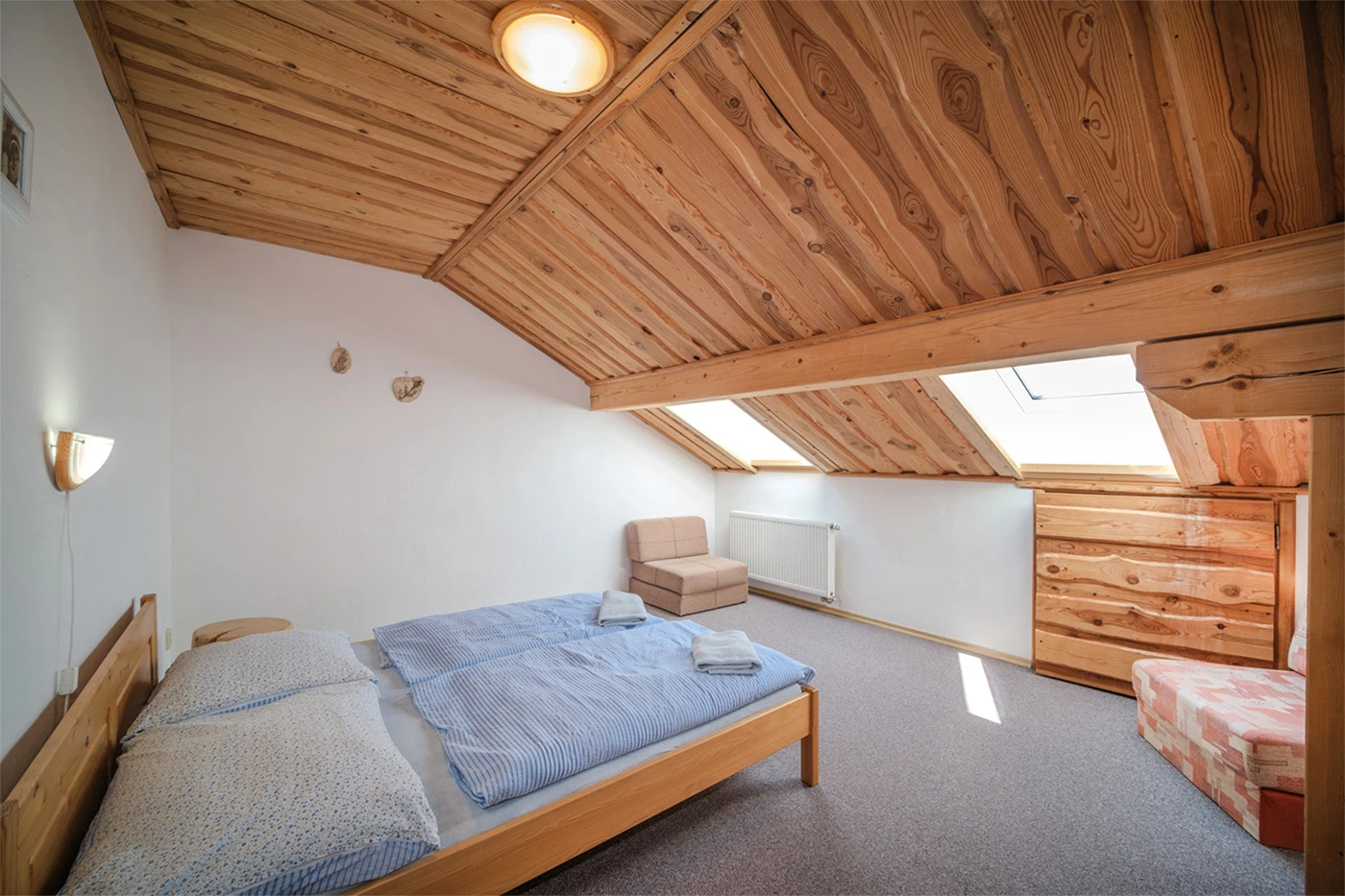 Postel: 2 manželské, 1 jednolůžko, 3 přistýlky