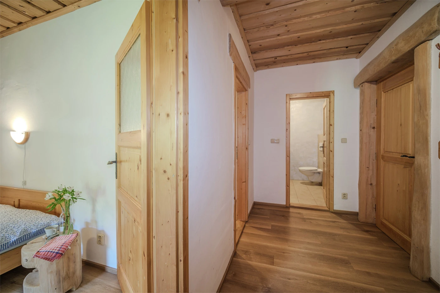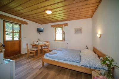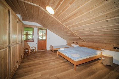 Pokoj je velký 38 m2, skládá se ze dvou místností a předsíňky. Pokoj má koupelnu se sprchovým koutem, vanou a toaletou a další toaleta je zvlášť v předsíňce. Dalším vybavením pokoje je manželská postel (rozměr 180×200 cm), lednička, skříň a komoda v jedné místnosti, v druhé místnosti jsou dvě jednolůžka (rozměr 90×200 cm), skříň a komoda. Pokoj s manželskou postelí je průchozí do koupelny. Každý pokoj v rámci apartmánu má sezení se stolkem a dvěma křesílky.